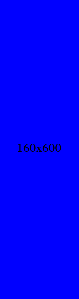 Banners multicolores de muestra para probar y depurar las campañas publicitarias. 160x600 es el estándar IAB, también llamado Skyscraper. Abajo están los banners de prueba disponibles para descargar.